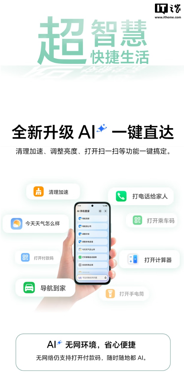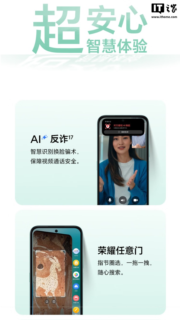 另外,这款手机还支持 IP64 级防尘防水,内置“太极缓震架构”,机身屏幕四角做了防撞加固处理,具备较强的抗摔能力。软件方面,这款手机的“AI 助手”可帮助用户擦除照片背景、智能抠图,AI 还可识别换脸骗术,保障通话安全。