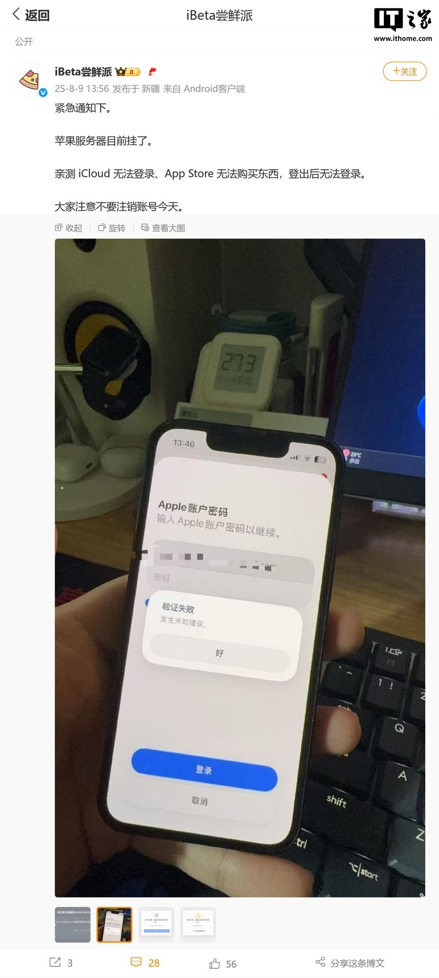 文章来源于互联网:IT之家-(更新:已修复)部分用户反馈称苹果 iCloud 服务故障,无法登录 App Store