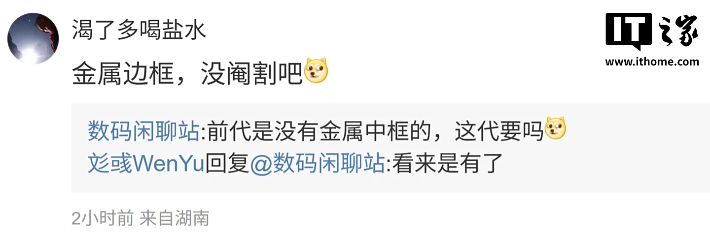 ”,博主则表示:“前代是没有金属中框的,这代要吗