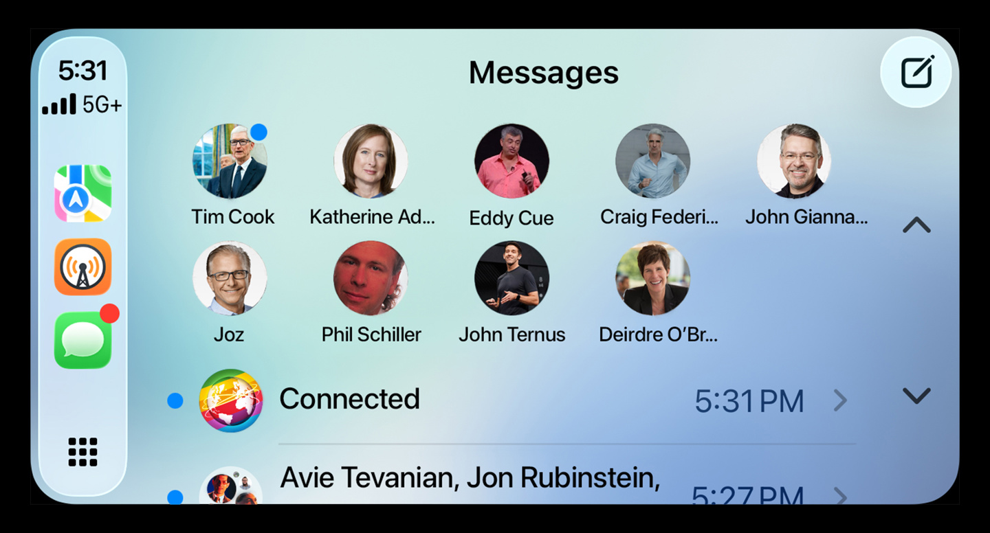 然而在 CarPlay 中,系统使用 5×2 网格,不仅打破肌肉记忆,还因最多仅支持九个置顶对话而必然留出空白格,即便苹果在宣传图中采用 5×1 布局,也无法解决实际使用中的不对称问题。IT之家附上相关截图如下: