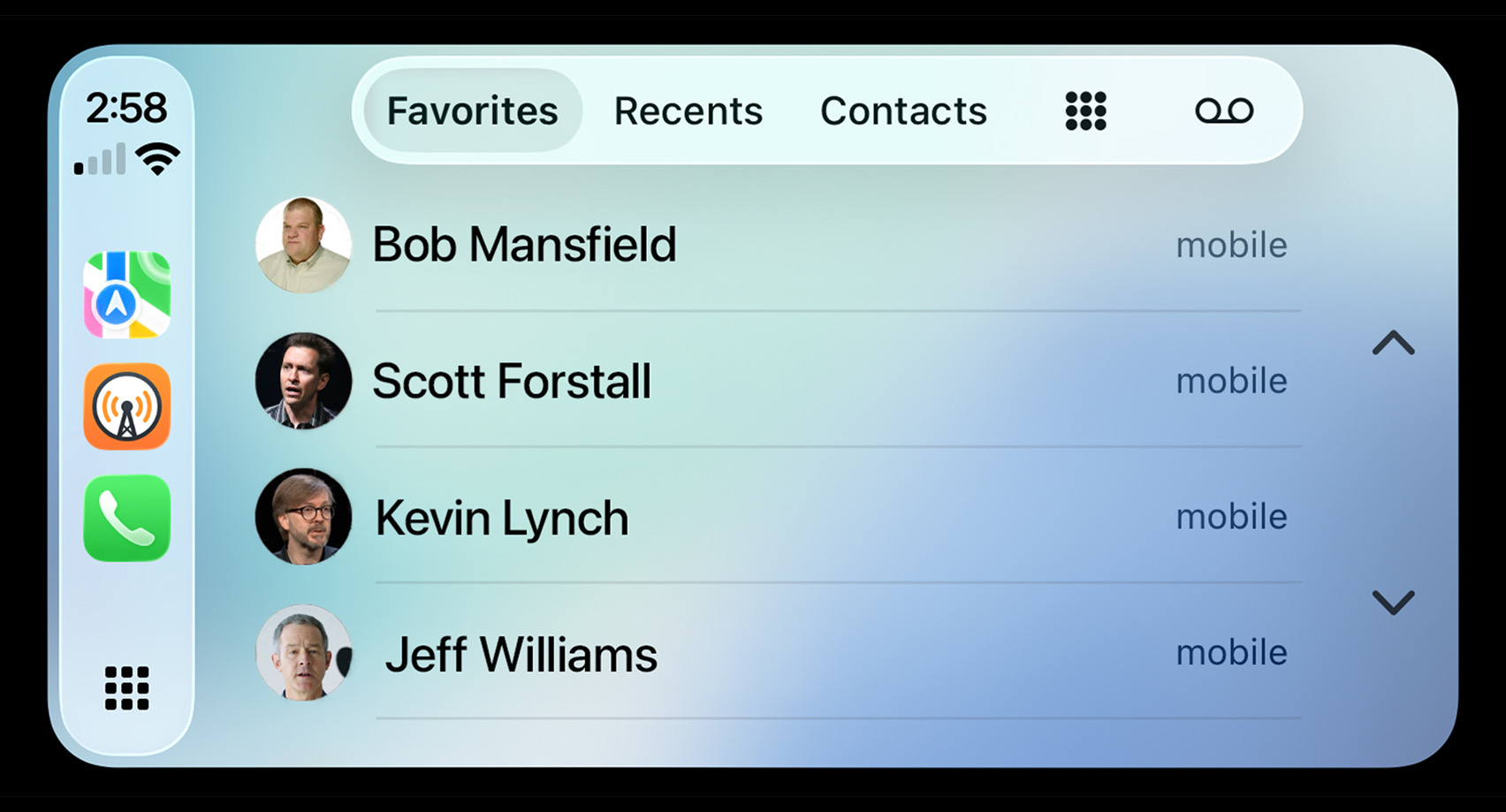 未读通知标记的位置也缺乏统一标准。在 CarPlay 中,收藏对话的未读点显示在头像右上方,而列表中的对话则置于名称左侧 —— 这与所有其他平台左对齐的设计完全背离。