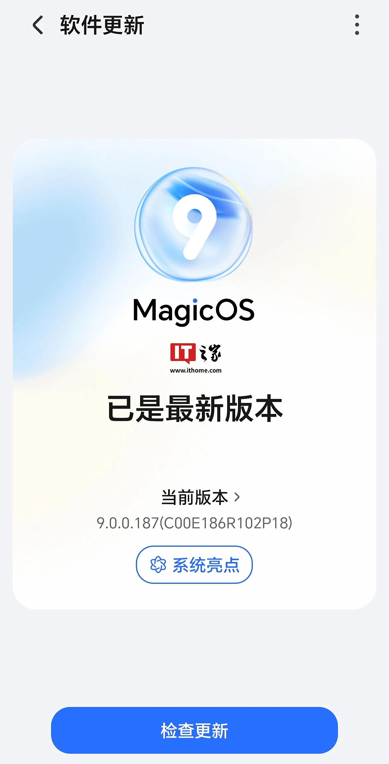值得一提的是,在更新至“187”版本后,荣耀 Magic7 系列手机的软件更新页面也获得设计上的大改,有望为后续系统 UI 的前瞻下放。