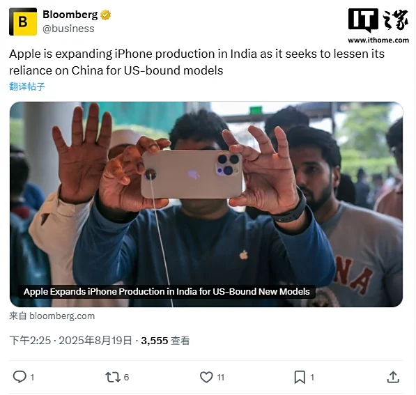 文章来源于互联网:IT之家-古尔曼:苹果今年首次实现全系 iPhone 17 / Pro 印度组装生产,专供美国市场