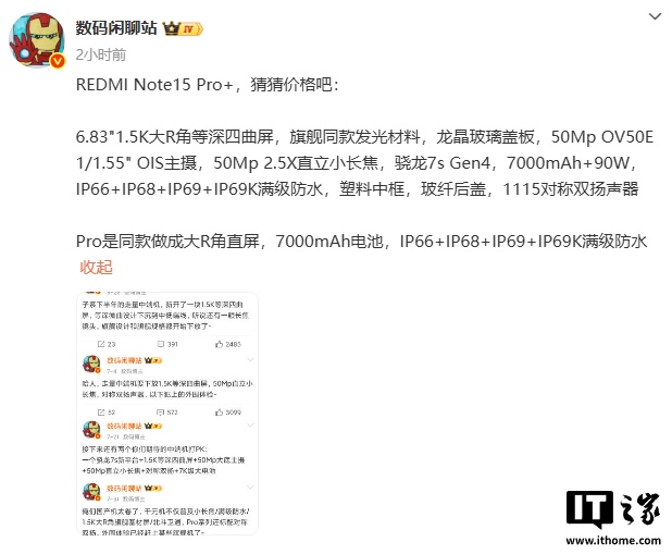 IT之家 8 月 21 日消息,小米 REDMI Note 15 Pro 系列手机发布会将于今晚 19:00 举行,现在该系列新机的主要规格已经被博主 @数码闲聊站 曝光。