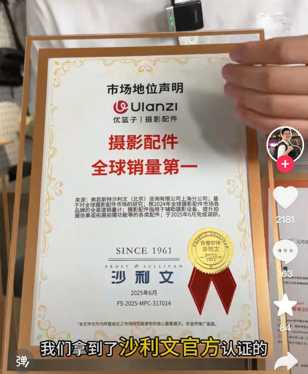 大家好!昨晚我正刷视频呢,突然瞅见个中登,掏出张证书,怼我脸上了,说自家产品全球销量第一?!👇