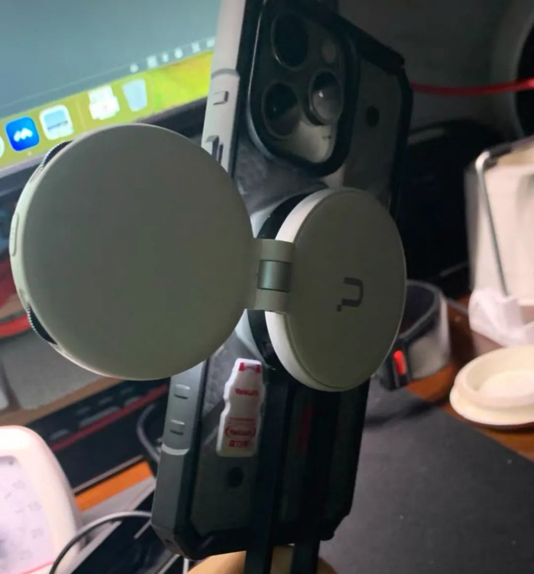 而且跟支架一样,都是磁吸的,咔哒一下就能卡在手机背面,压根感觉不到多了个家伙事,还不用操心咋打光了。手机镜头指哪,固定下面的补光灯,就能自动把光线打哪。