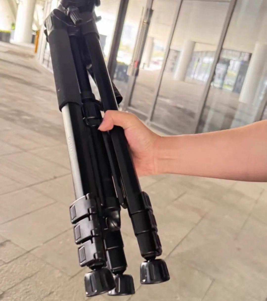 这玩意哪怕折好,都比胳膊还粗还长,一只手都握不住,本来出门,我背一个包就行,带着它,就得多拎一个。