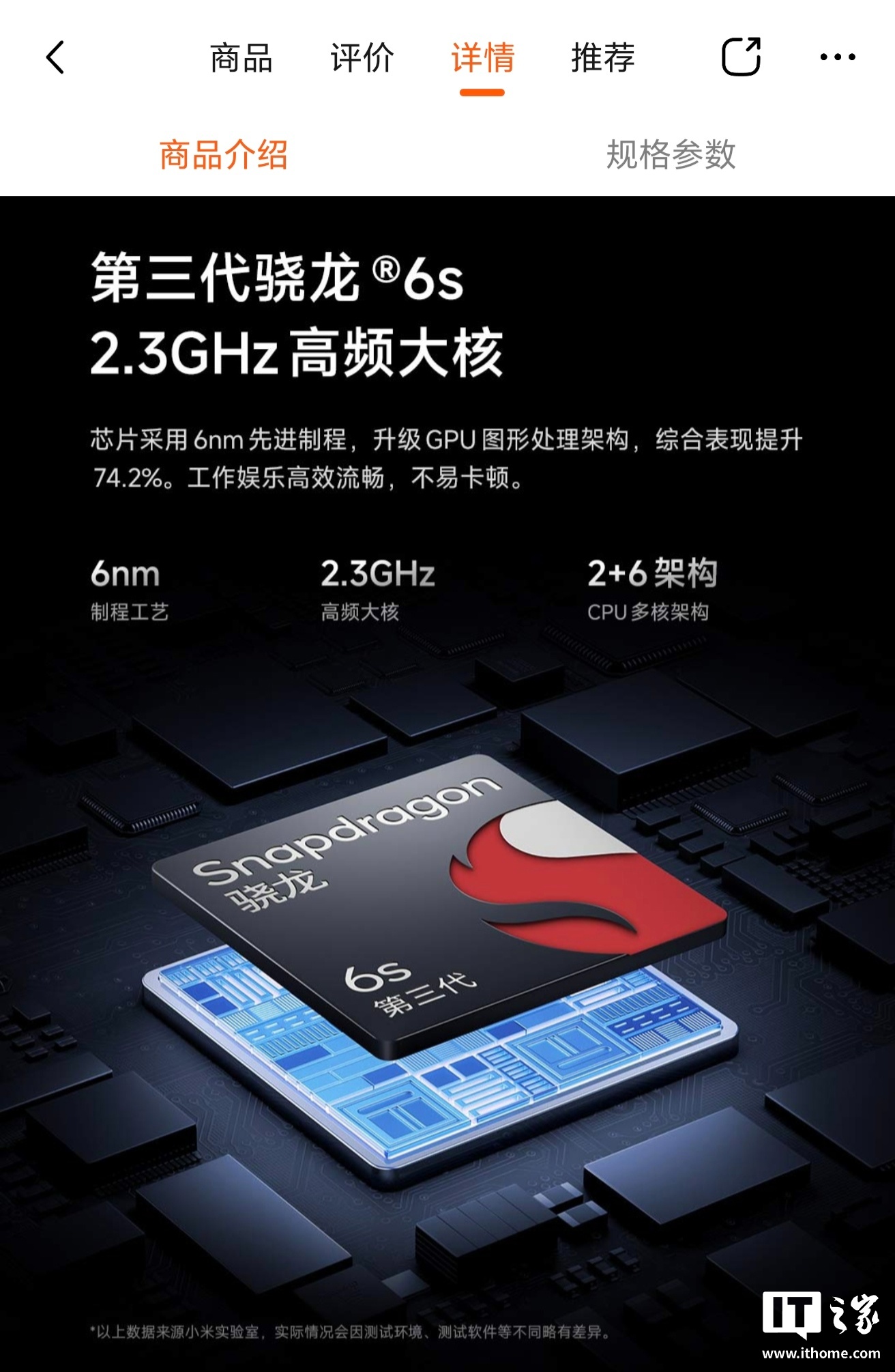 22:59 更新:小米商城详情页显示,小米 REDMI Note 15R 手机处理器为第三代骁龙 6s,售价 1499 元起。