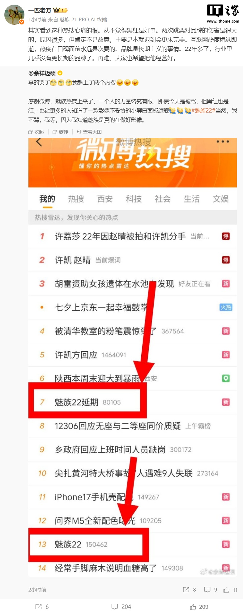 文章来源于互联网:IT之家-万志强回应“魅族 22 延期”上热搜:很心痛,黑红不是好事