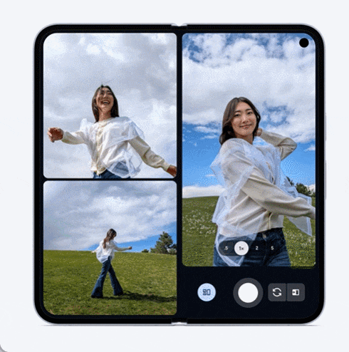 在拍照界面,大屏展开后,可以支持一边拍照一边预览,这的确是大屏的一项优势。