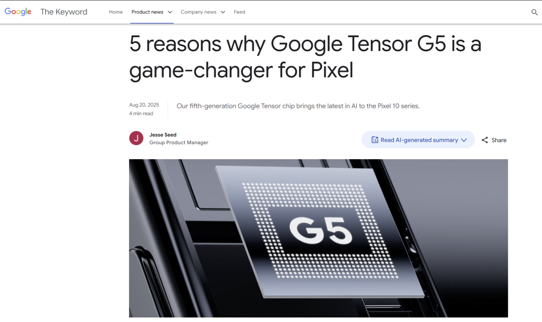 ▲谷歌将Tensor G5称为“a game-changer for Pixel”