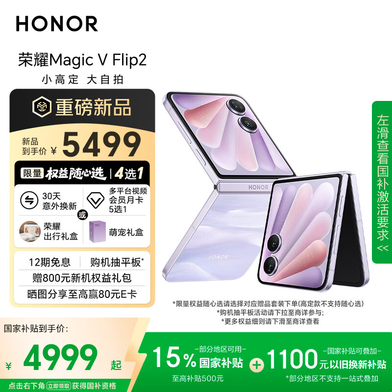 京东荣耀 Magic V Flip2 小折叠屏 12+256 晨曦紫 5499 元直达链接