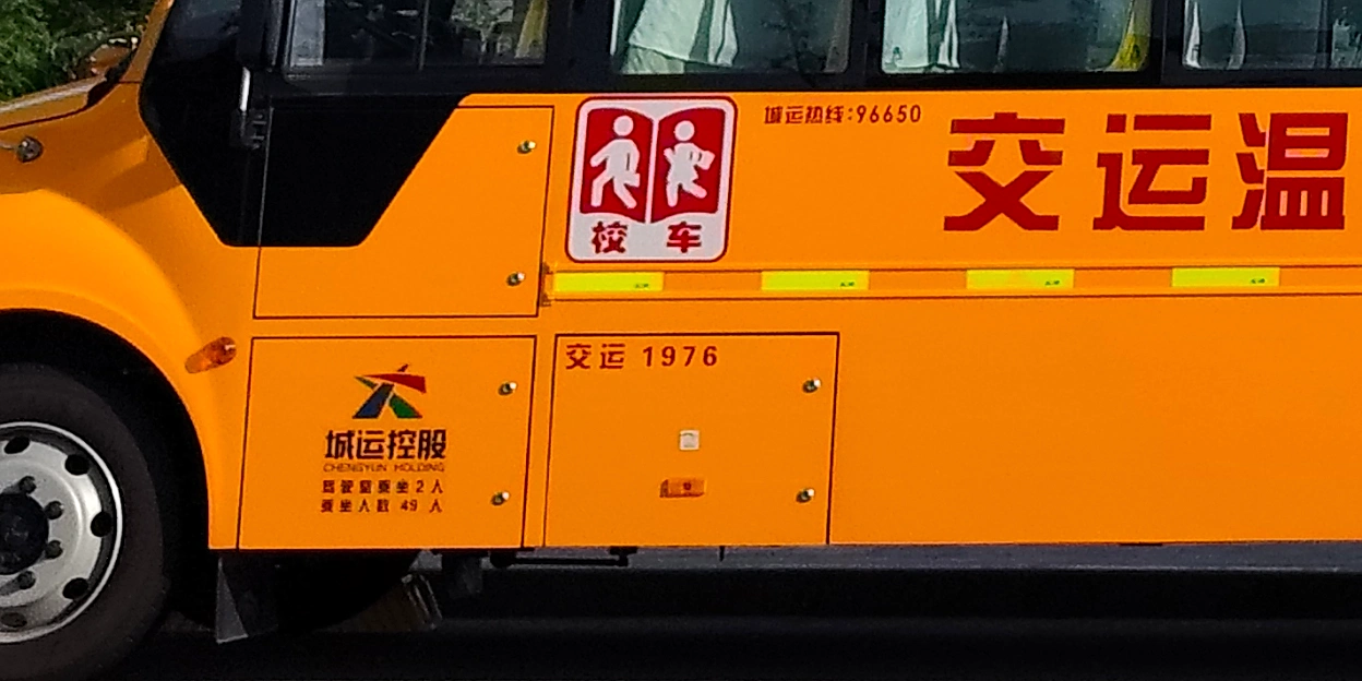 下面这一张也是如此,橘黄色的校车明显比真实所见更艳丽一些,同时画面中明暗过渡自然。放大后,校车上的文字还是比较清晰的,不过小字就看不见了,画面细节解析力尚可。