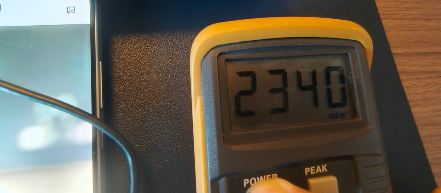 官方表示在强光下,平均显示面积小于等于 25% 时,可激发最高 3200nits 峰值亮度,在测试时,IT之家打开 Note 15 Pro + 屏幕的阳光模式,然后用强光手电激发屏幕亮度,测到了最高亮度 2340 nits,由于测试环境和条件有限,没法激发到官方的最高亮度,但这个亮度也绝对足够户外使用了。
