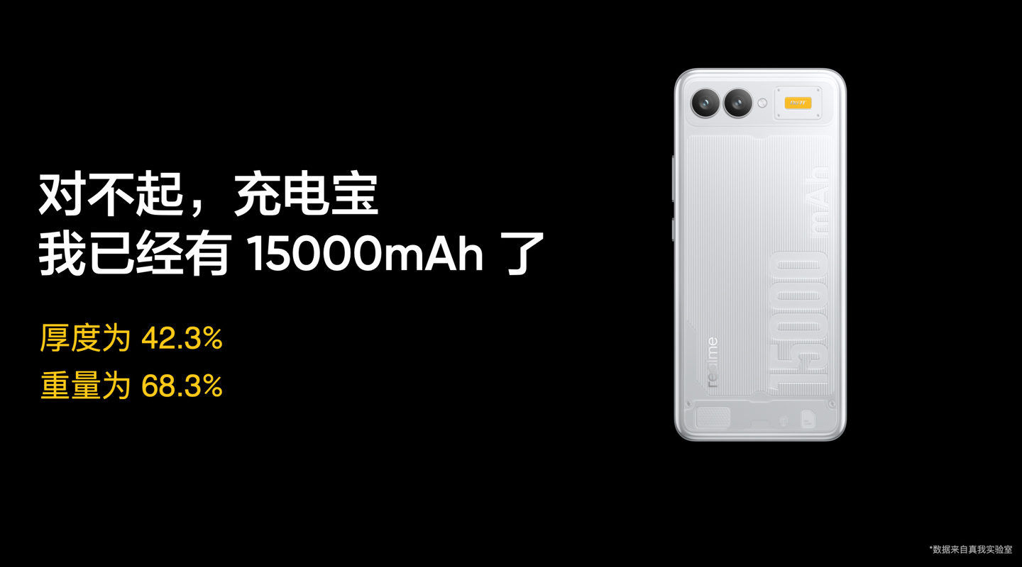 IT之家 8 月 28 日消息,在今天的真我 7 周年 828 真粉节上,真我正式发布了 15000mAh 概念手机,挑战行业续航上限。