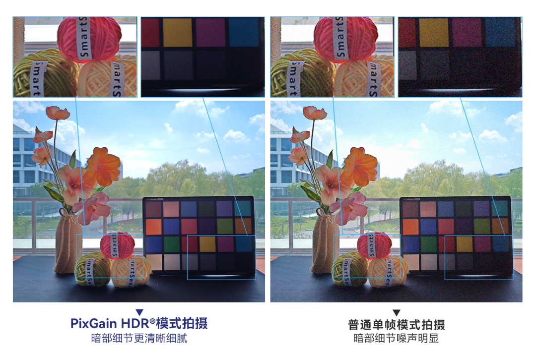 IT之家在此援引新闻稿所述,这块传感器采用 55 纳米 Stacked BSI 工艺,可在 PixGain HDR 模式下,通过单次曝光片上双帧融合,帮助摄像头捕捉到更多暗部细节。这种模式在技术上还支持片上双帧融合,可降低 HDR 视频对手机 SoC 的算力需求,减少功耗和发热。