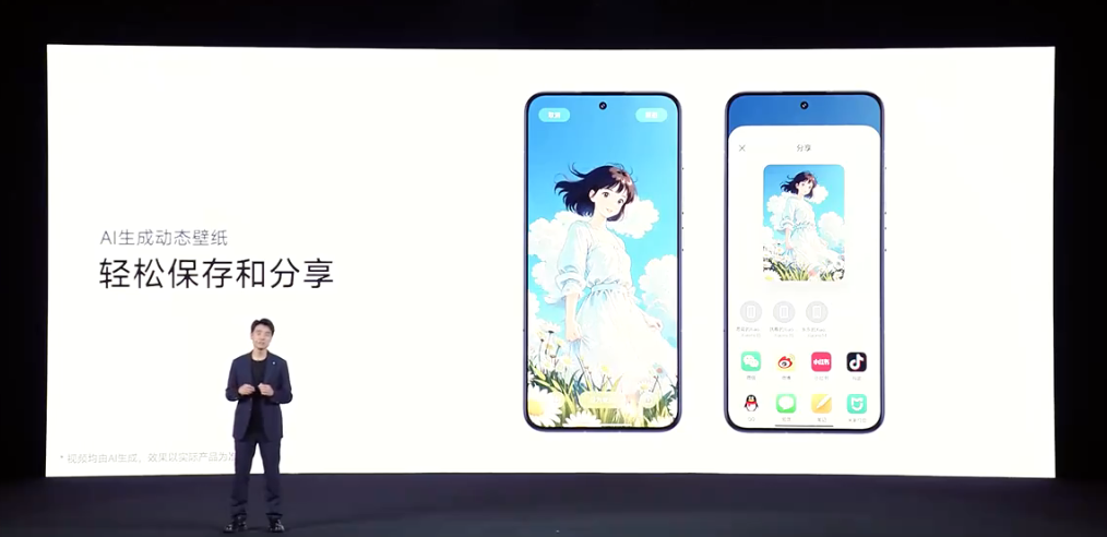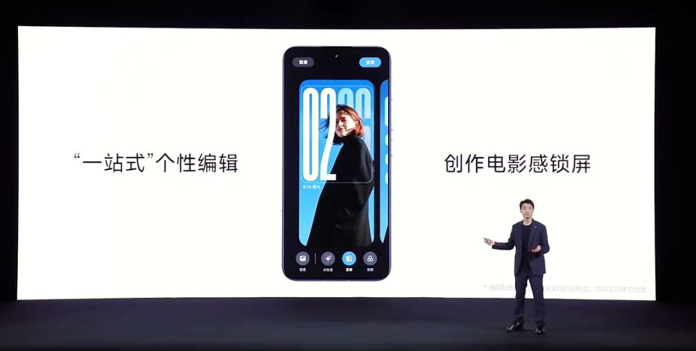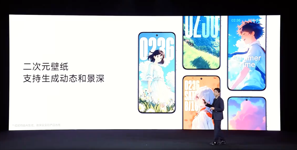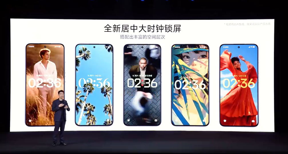 锁屏方面,澎湃 OS 3 支持 AI 生成动态壁纸,可选择多种风格化的动态壁纸;带来全新居中大时钟锁屏,生成景深等也更加方便。
