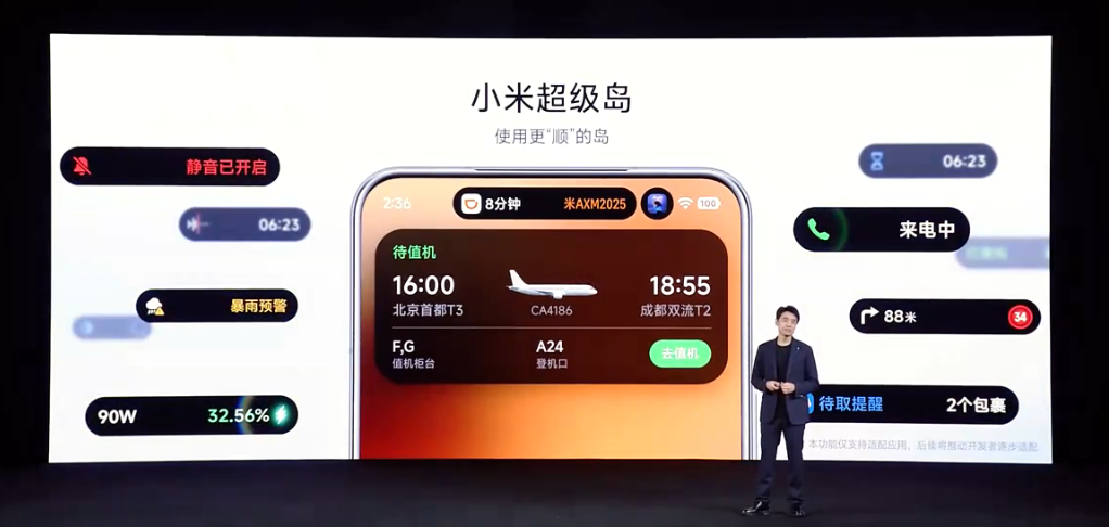 小米澎湃 OS 3 正式上“岛”,功能名为“超级岛”,对行业目前的“岛”进行了优化,定制超窄字体,且能够同时显示多个岛、灵活切换,下拉“超级岛”可弹出小窗使用。