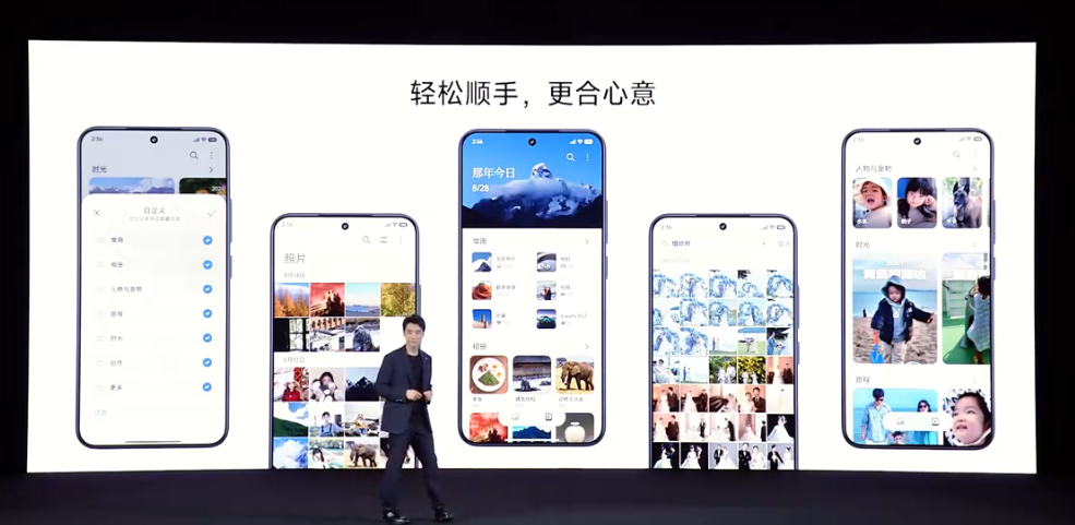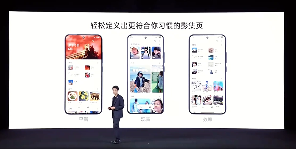 澎湃 OS 3 的相册也迎来新设计,优化了各模块的显示,且支持自定义模块排序;能够根据宠物识别照片;还能够贴一下传输大量照片视频,也能跟苹果手机贴贴互传。