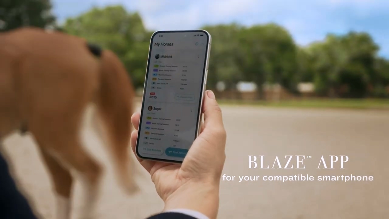 在功能方面,Blaze 配备光学传感器,可实时监测马匹心率,并在连接的智能手表上显示,在监测到心率过高后,骑手可收到提醒。此外,设备还能测量皮肤温度和其他热成像数据,从而分析活动强度,结合支持 GPS 的智能手表或手机,还能记录和显示马匹的运动距离。