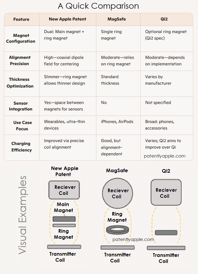 IT之家 8 月 29 日消息,科技媒体 patentlyapple 昨日(8 月 28 日)发布博文,报道称苹果公司获批新的技术专利,设想为下一代无线充电设计,采用“双磁体架构”,通过中央主磁体与环形磁体配合,实现更精准的线圈对准和更薄的结构。