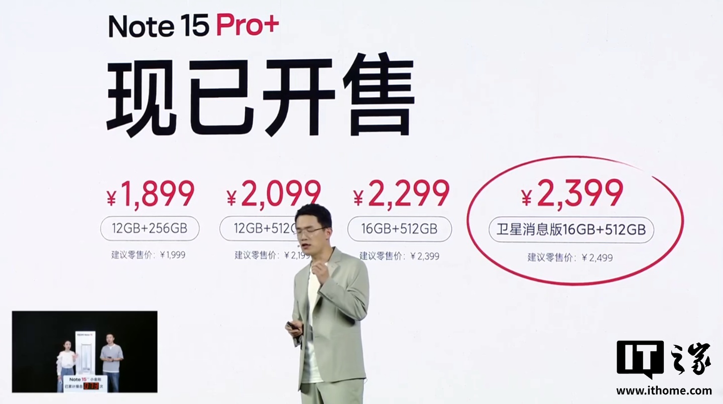 据IT之家此前报道,REDMI Note 15 Pro+ 手机于 8 月 21 日发布,顶配 16GB+512GB 卫星消息版定价 2499 元,首发 2399 元。