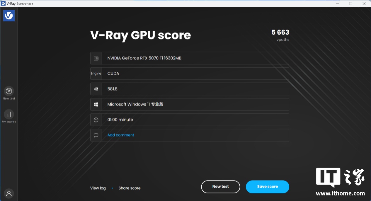 影驰名人堂 GeForce RTX 5070 Ti HOF 显卡得分为 5663 分;