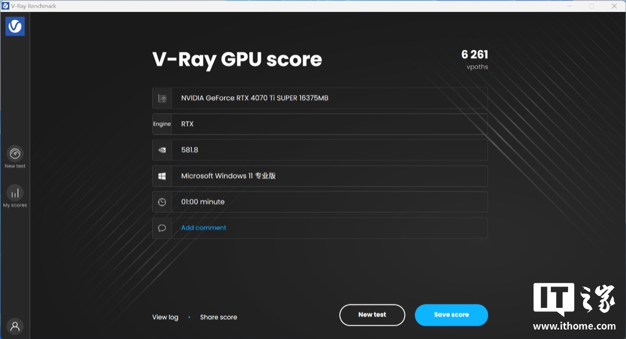 GeForce RTX 4070 Ti SUPER 显卡得分为 6261 分;