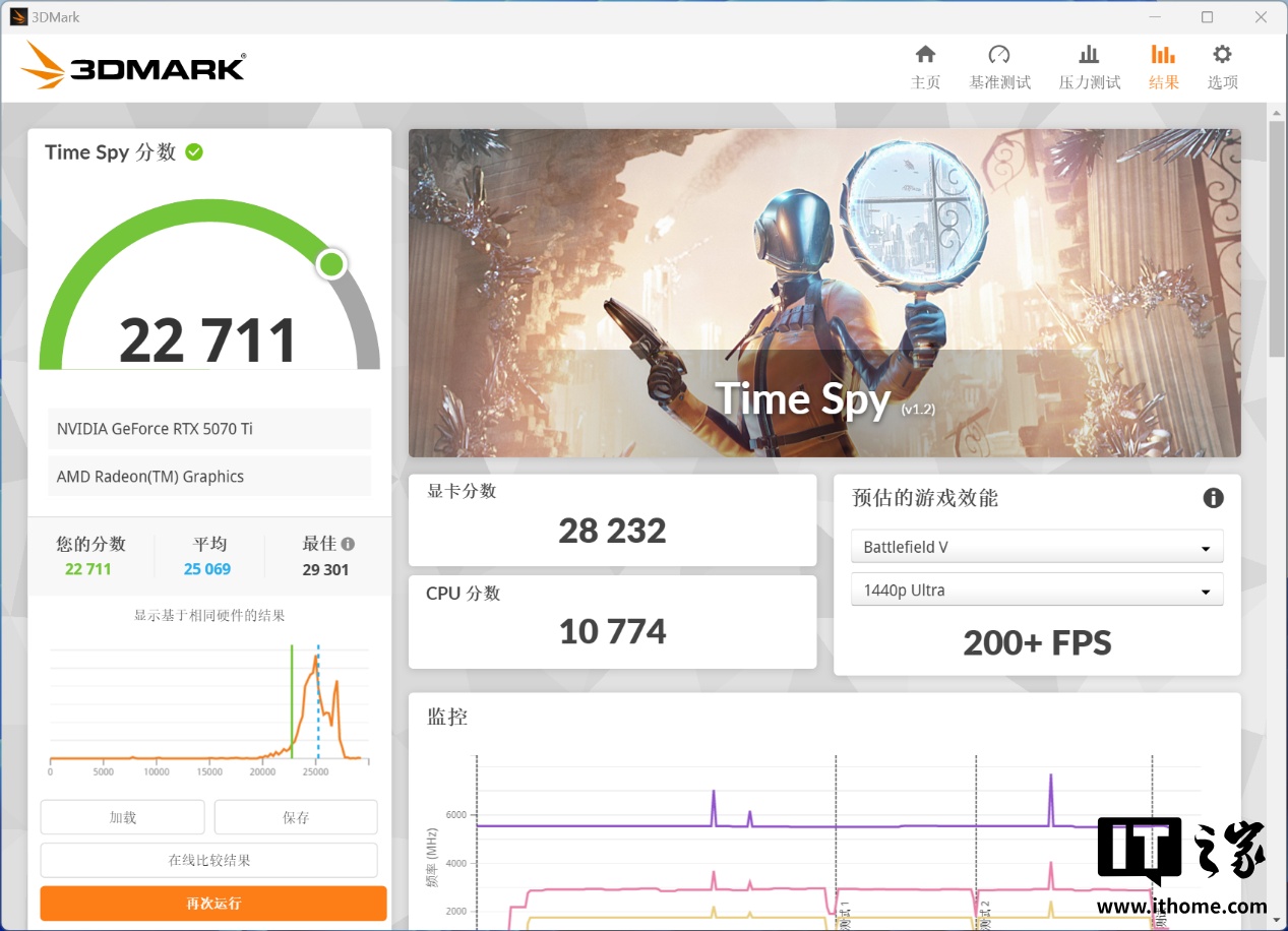 接下来看 3D Mark 的跑分表现,首先是 Time Spy DX12 测试: