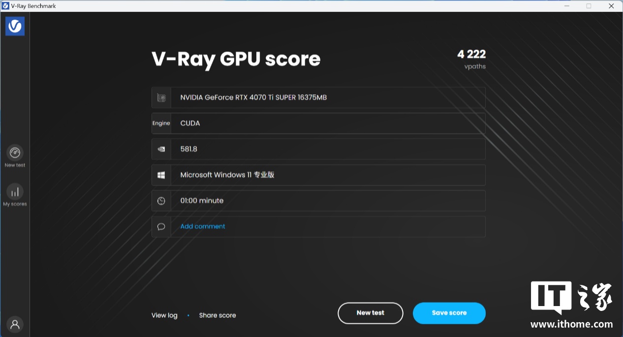 GeForce RTX 4070 Ti SUPER 显卡得分为 4222 分;