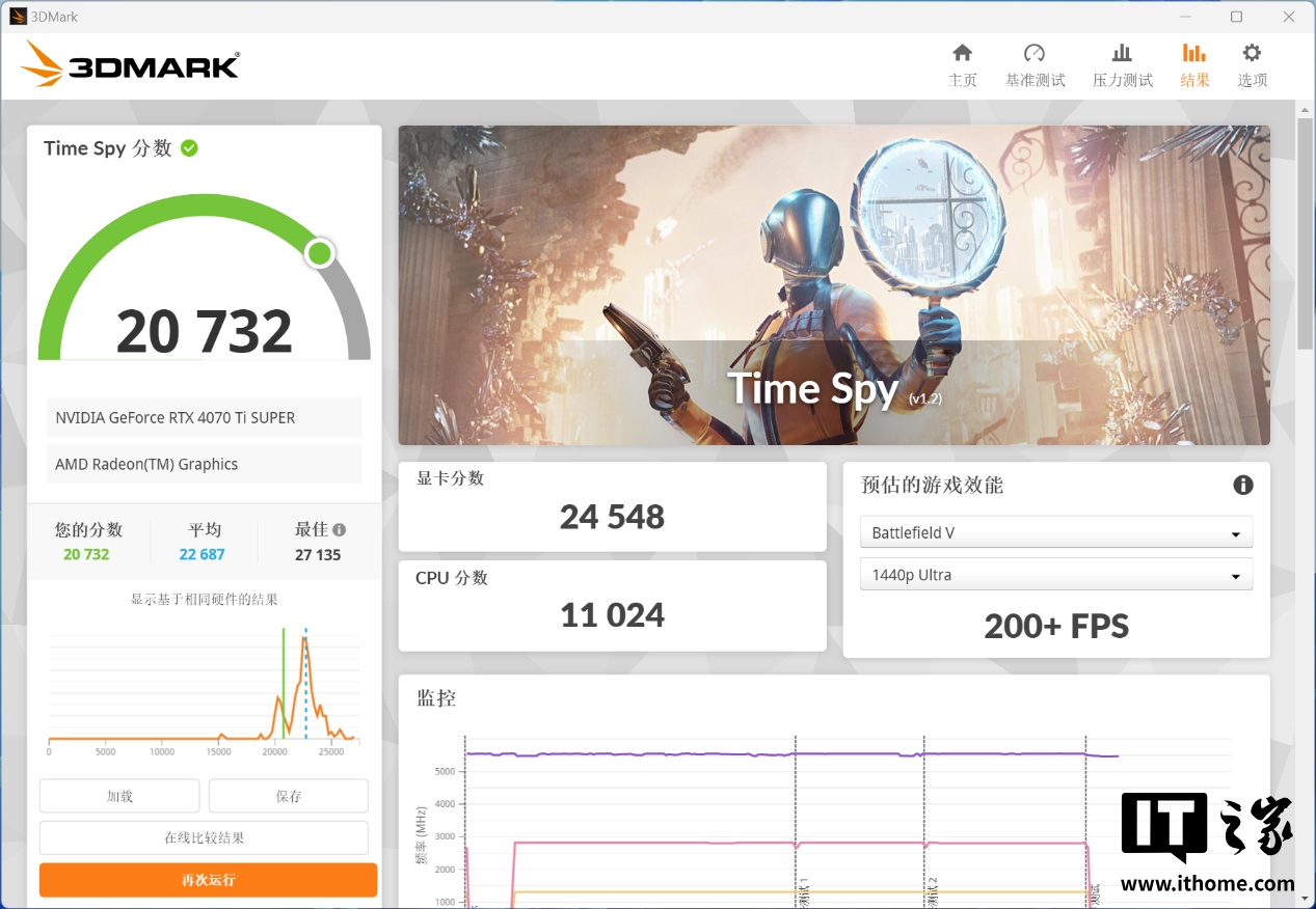 GeForce RTX 4070 Ti SUPER 的显卡分数为 24548 分;