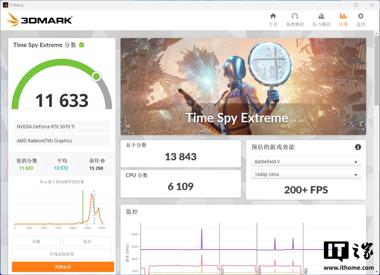 相比 RTX 4070 Ti SUPER 的提升幅度达到了 14.8%,相比 RTX 5070 Ti 非公卡首测时的 13652 分也有 1.3% 的提升。