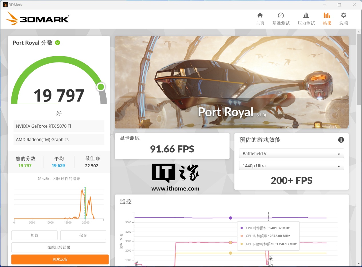 影驰名人堂 GeForce RTX 5070 Ti HOF 的显卡分数为 19797 分;