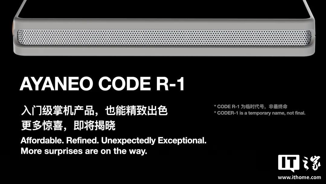 从表述来看,Pocket AIR Mini 应该就是 AYANEO 今年七月末在 2025 – 2026 战略分享会上提到的临时代号为 CODE R-1 的产品,当时 AYANEO 宣称这款掌机是品牌入门级产品线第一款产品,在设计、性能和系统体验领先同级。