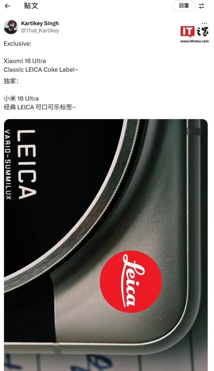文章来源于互联网:凤凰网-消息称小米16 Ultra手机将首次在机身印“可口可乐”徕卡Logo