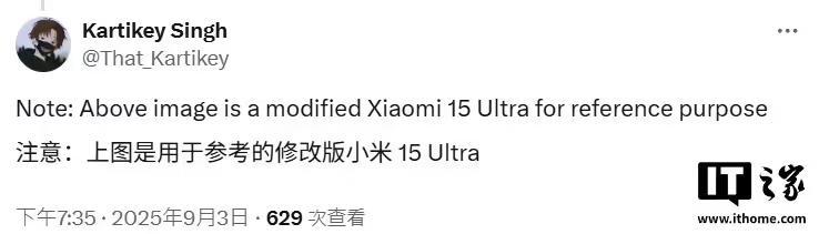 IT之家 9 月 4 日消息,消息人士 Kartikey Singh 昨天在 X 平台透露了小米 16 Ultra 手机的最新消息。