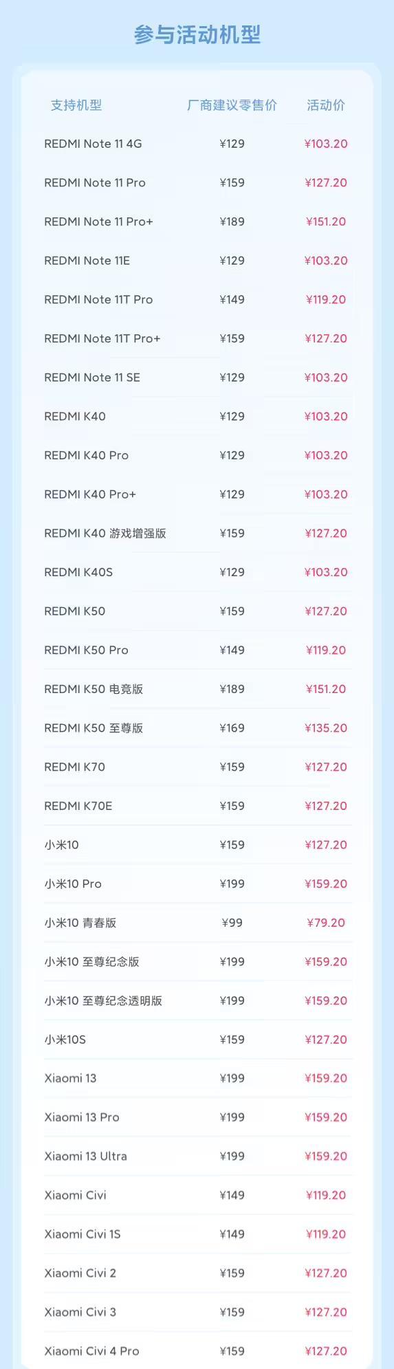 另外,小米九月服务周活动目前正在进行,手机电池换新 79.2 元起,小米、REDMI 品牌笔记本 5 折深度清洁,家电清洁一口价 99 元,活动时间为 9 月 1 日 10:00-9 月 7 日 24:00。