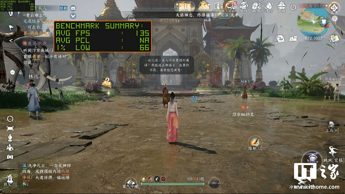 为了贴合主流玩家的硬件情况和使用场景,我们选择使用 RTX 5060 Ti 显卡、2K 分辨率 + 精致画质,测试场景为南陀岛入港驿站前方的广场区域,可以说是每个玩家的必经之路。