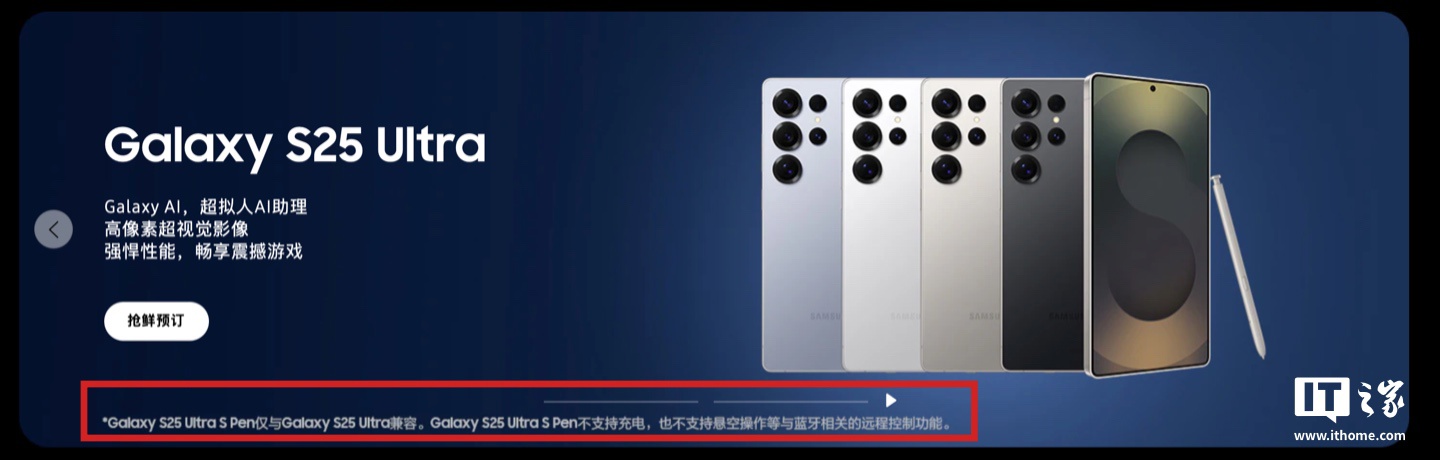 IT之家 9 月 6 日消息,三星今年 1 月推出的 Galaxy S25 Ultra 手机对自带的 S Pen 手写笔进行调整,改为无源规格,相应手写笔不支持充电,不支持悬空操作等与蓝牙相关的远程控制功能,且仅适用于 S25 Ultra 手机(不兼容以往机型)。