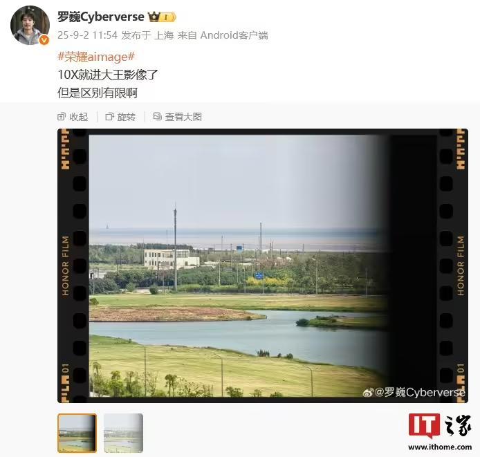 此外,罗巍在 9 月 2 日发文透露,AiMAGE 将支持 10X 触发大王影像,但区别有限。