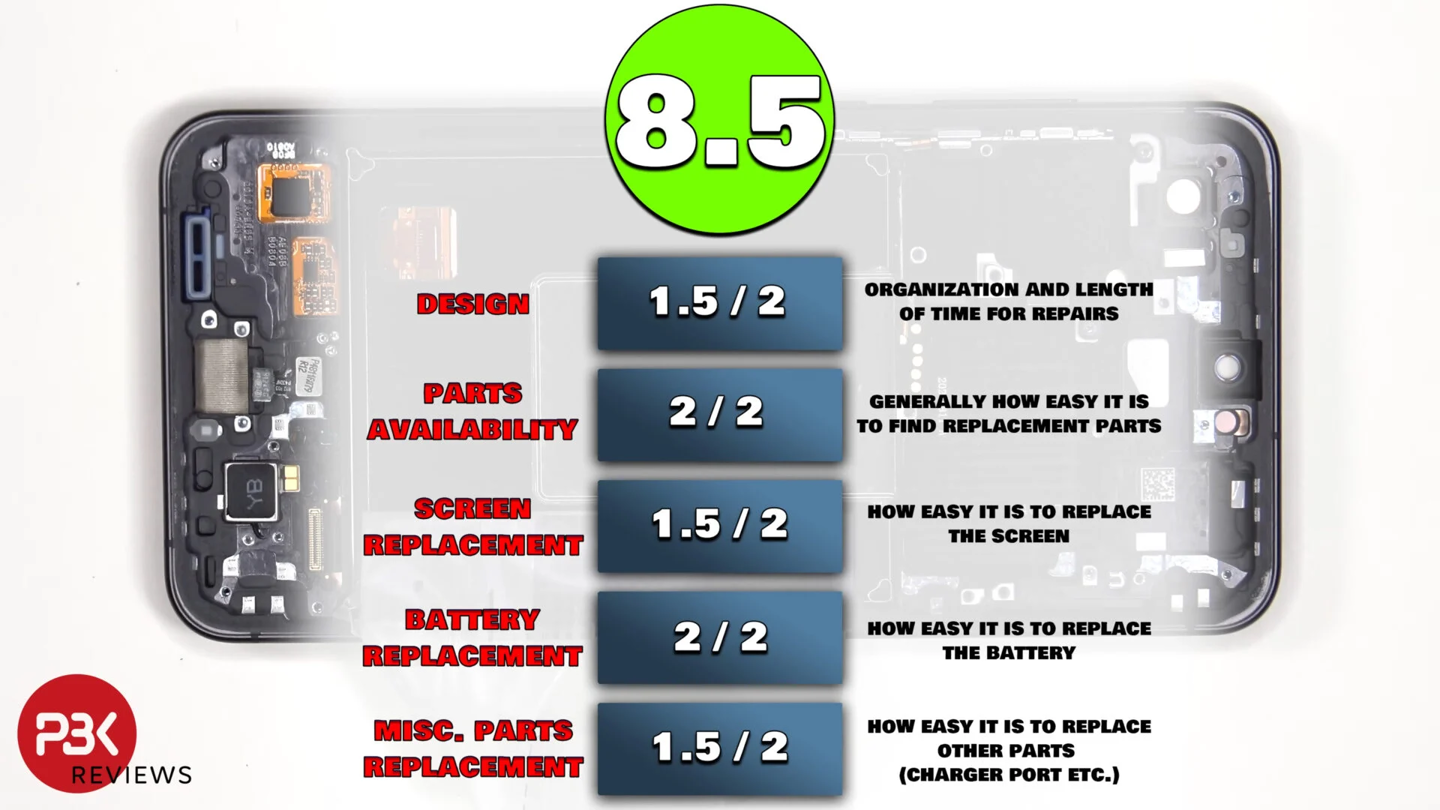 相比之下,上一代 Galaxy S24 FE 的维修便利度评分为 8.5 分。新机之所以得分更高,主要是因为在“杂项部件更换”这一评分类别中表现更好,例如可以更加容易更换充电接口等部件。