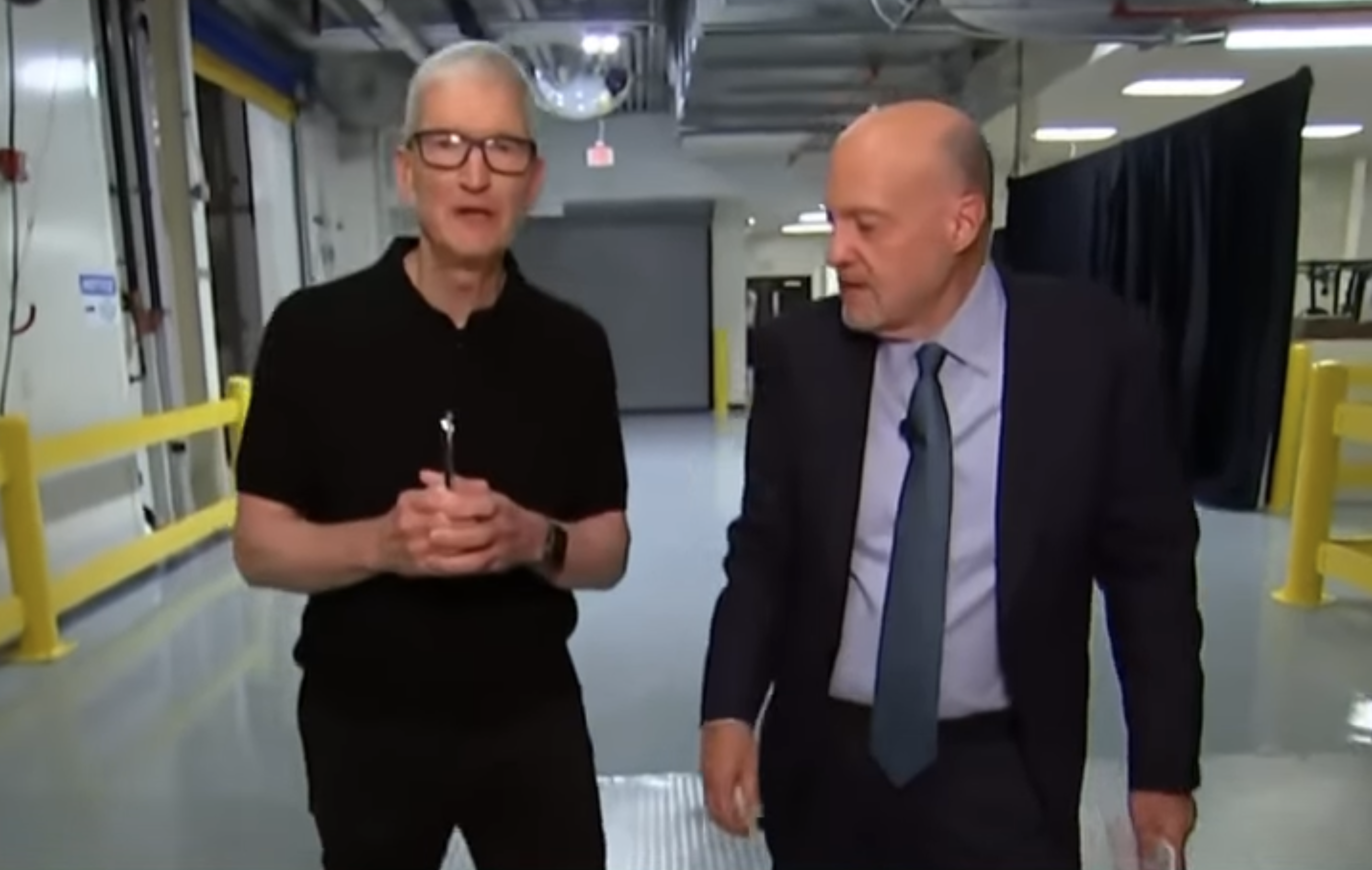 周五,库克参观了位于美国肯塔基州哈罗兹堡的康宁公司工厂,并与财经频道CNBC主持人吉姆·克莱默(Jim Kramer)交谈,内容涉及苹果新发布的iPhone以及苹果对康宁的投资。