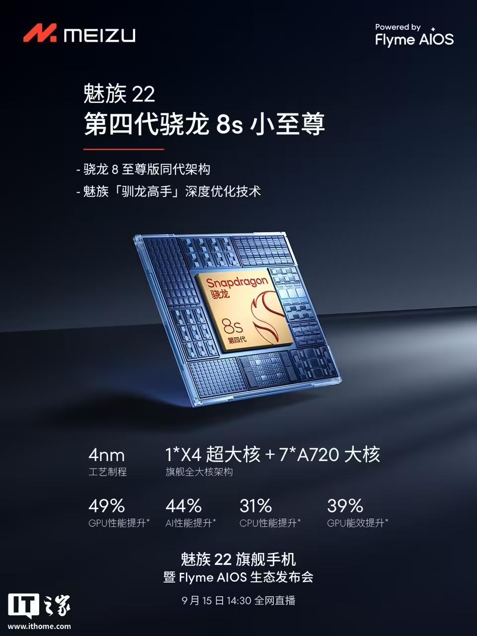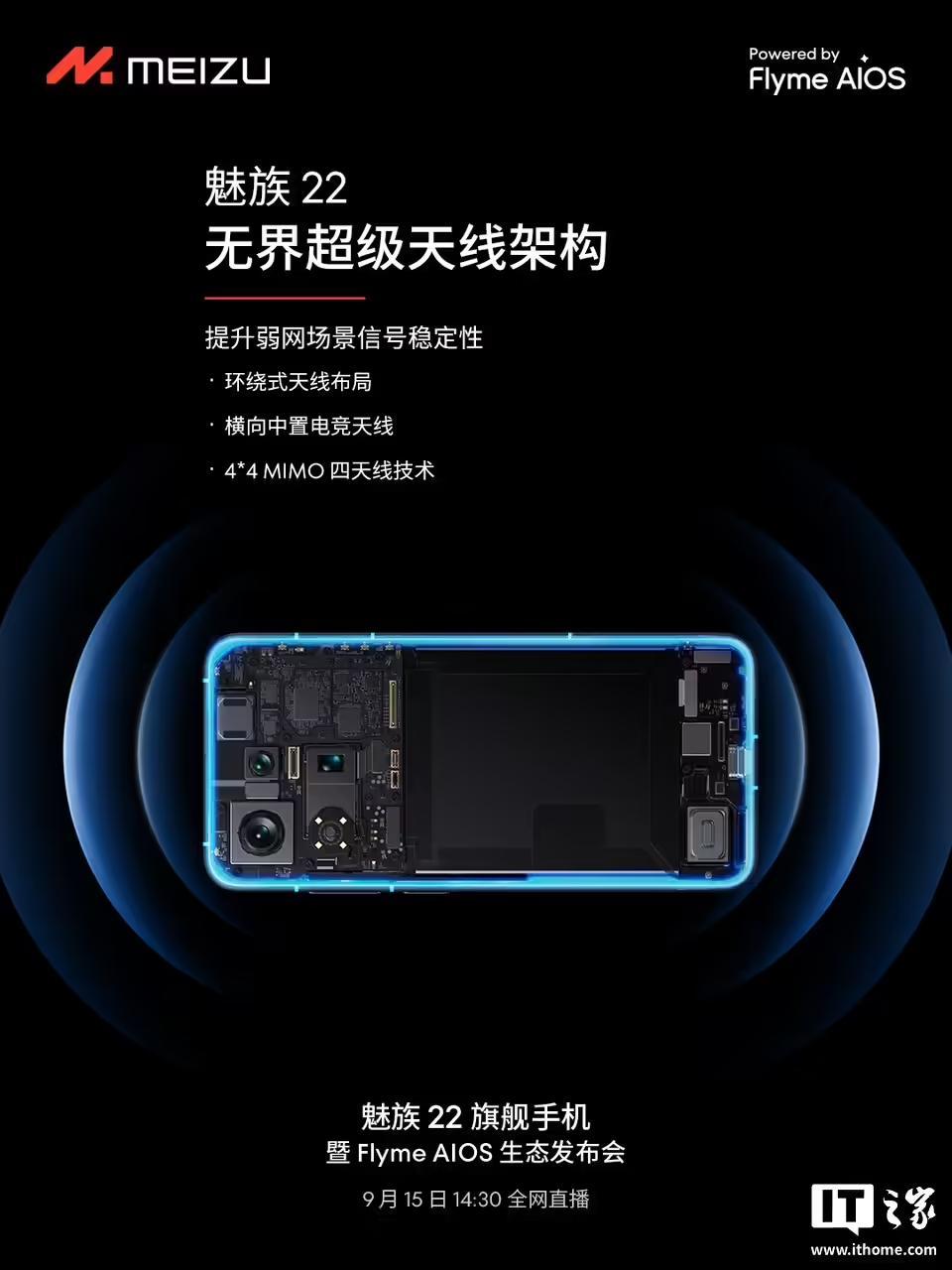 IT之家 9 月 14 日消息,魅族 22 旗舰手机将于 9 月 15 日 14:30 在珠海・魅族科技大楼正式发布。