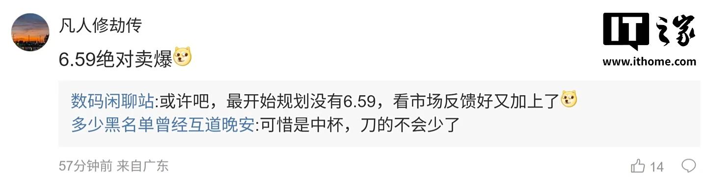 ”,博主则回复道:“或许吧,最开始规划没有 6.59,看市场反馈好又加上了