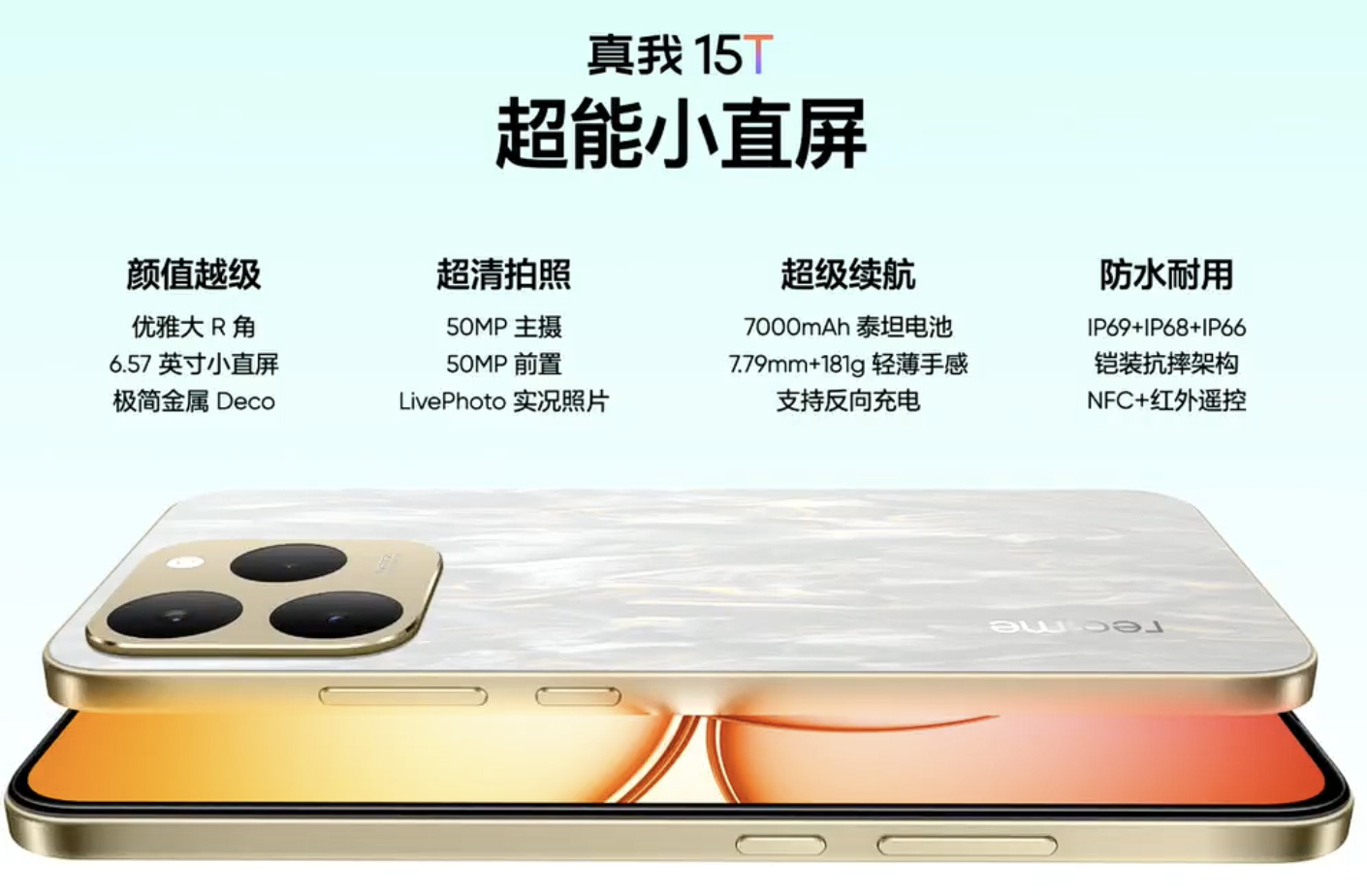 IT之家 9 月 16 日消息,在今天的 realme“不误正夜”LiveHouse 发布会中,realme 真我 15T 手机正式发布,主打“超能小直屏”,定价 1399 元起,首发价 1199 元起。