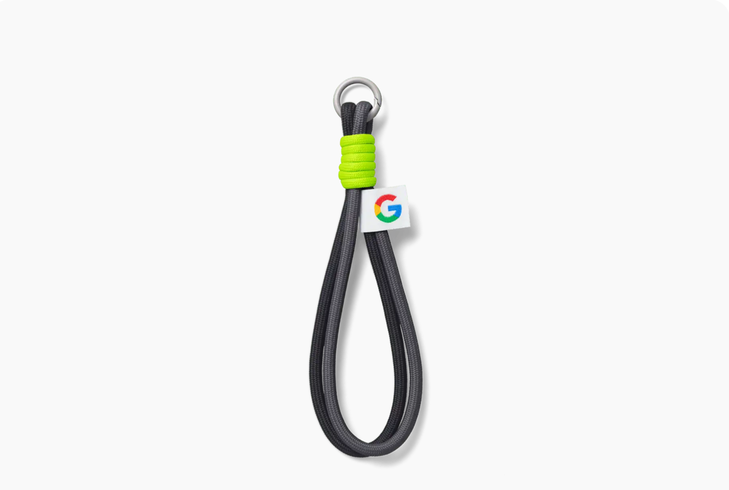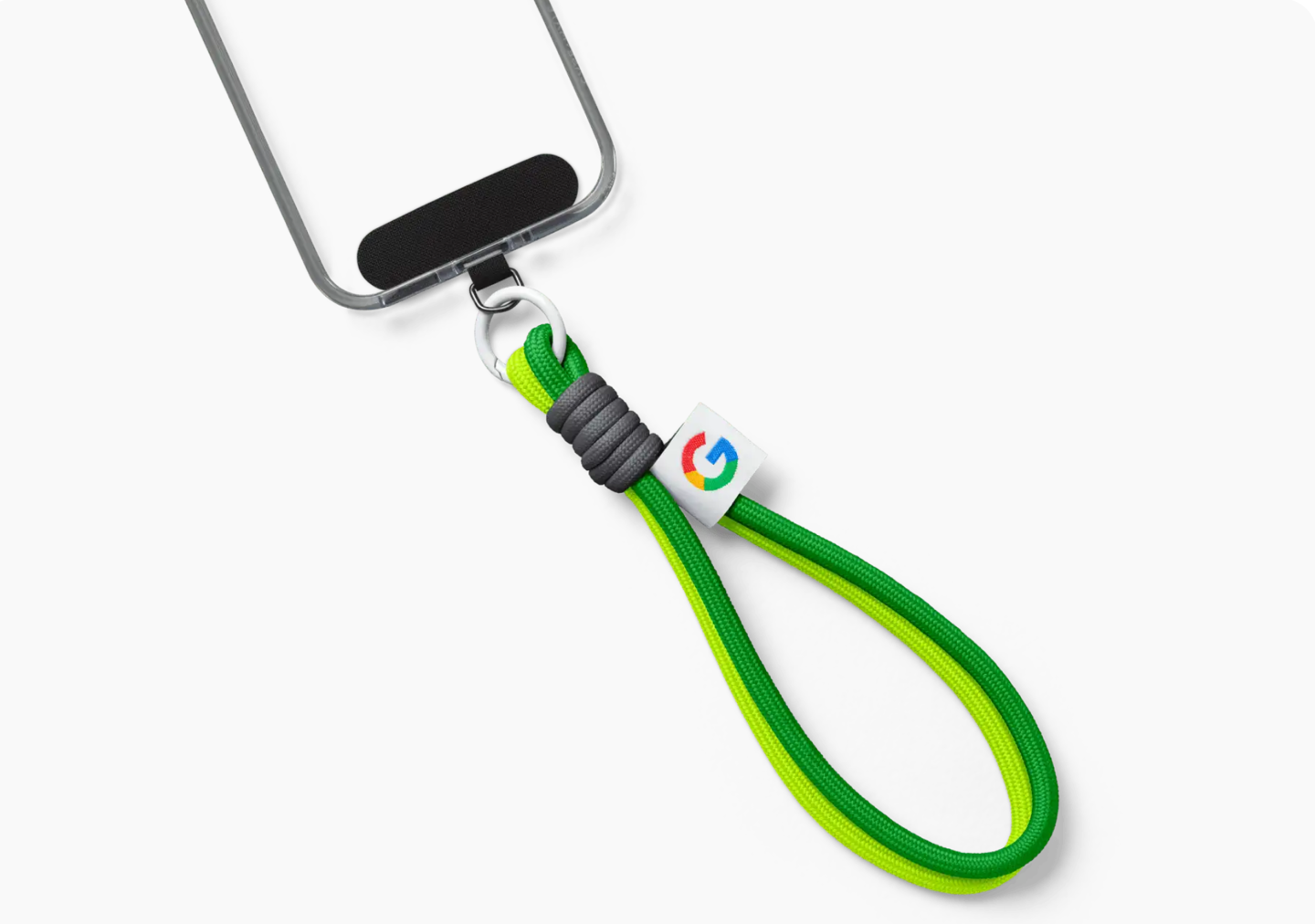 Rope Wristlet 是一款腕带配件,通过登山扣连接到 D 形金属环,而 D 形环则固定在插片上,插片安装在手机壳与机身之间。