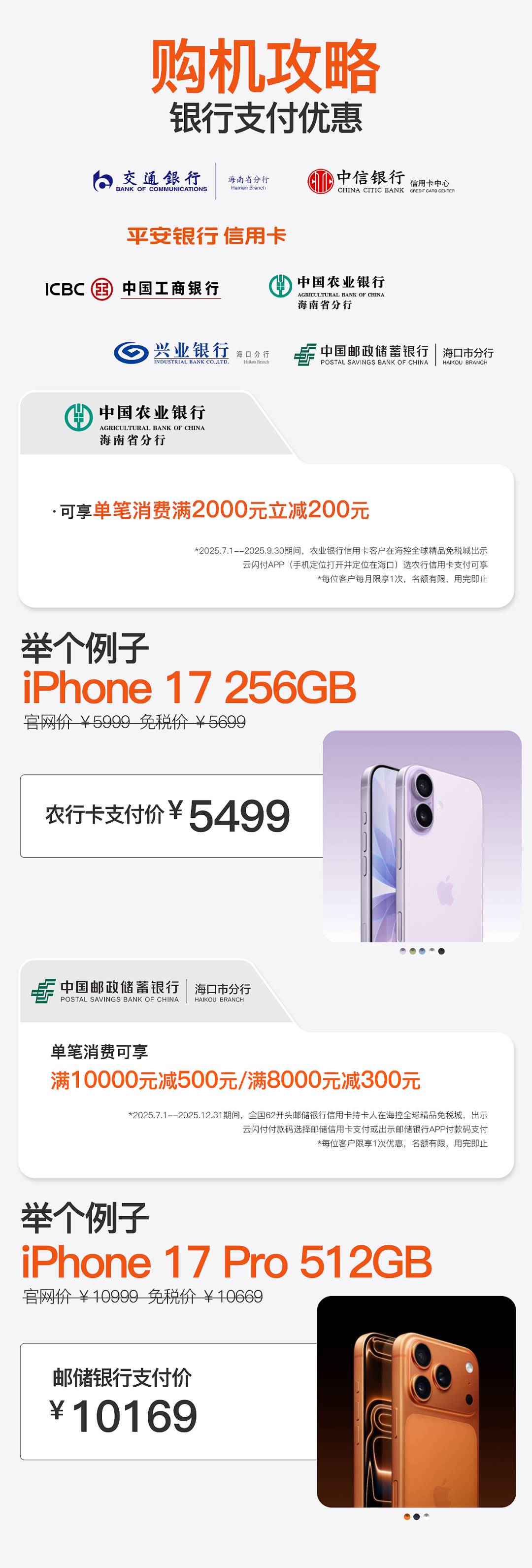 文章来源于互联网:凤凰网-5699元起,苹果 iPhone 17 / Pro 系列手机海南免税价格出炉