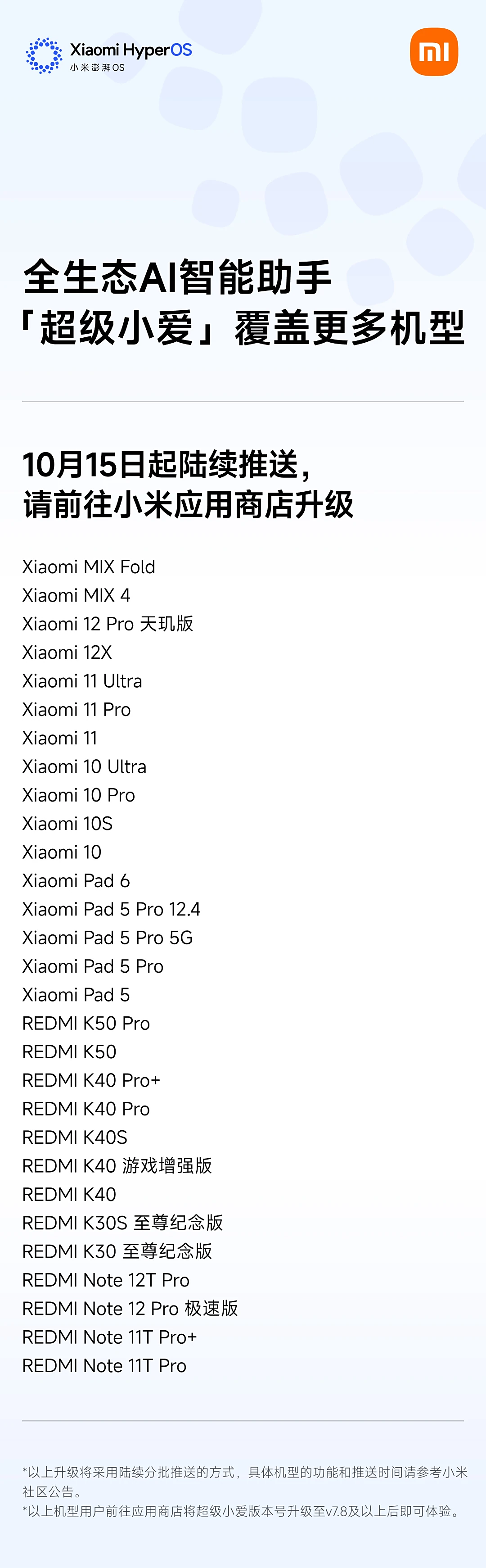 文章来源于互联网:IT之家-超级小爱 AI 助手官宣覆盖更多小米 / REDMI 机型,10 月 15 日起陆续推送