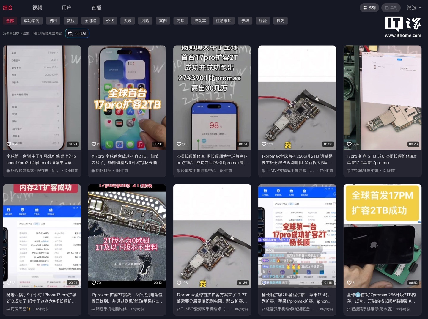 对此,不少提供扩容服务的博主已在这几天陆续分享了给 iPhone 17 系列手机扩容升级的视频,不过由于系列机型内部结构变化较大,因此当时暂时仅能将相应机型扩容至 1TB。而如今有博主“杨长顺维修家”称自己成功将系列机型扩容至 2TB,号称跑分“成功跑出 2743901 比 Pro Max 高出 30 几万”。