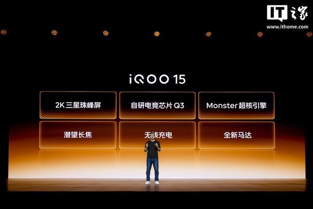 IT之家 9 月 23 日消息,iQOO 15 电竞性能技术沟通会刚刚结束,iQOO 游戏手机官方宣布 iQOO 15 新机将搭载 Monster 超核引擎 + 自研电竞芯片 Q3 + 2K 三星珠峰屏,定位“超级性能旗舰”。